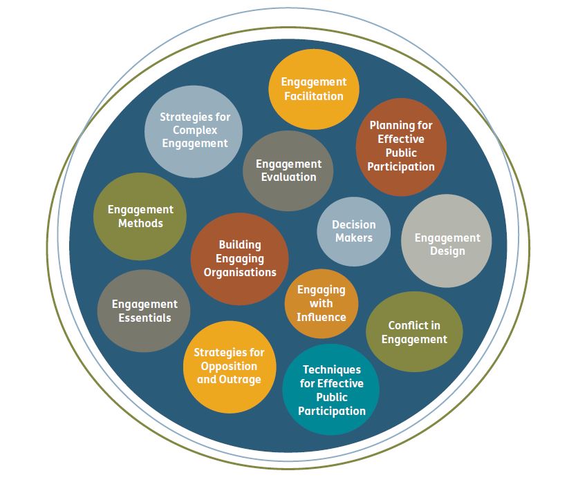 Engagement Essentials one day An introduction and overview of what engagement means in the Australasian context. Includes key concepts upon which to plan design facilitate and implement successful community and stakeholder engagement processes. This course will give a foundation understanding of essential elements of a best practice model for engagement.